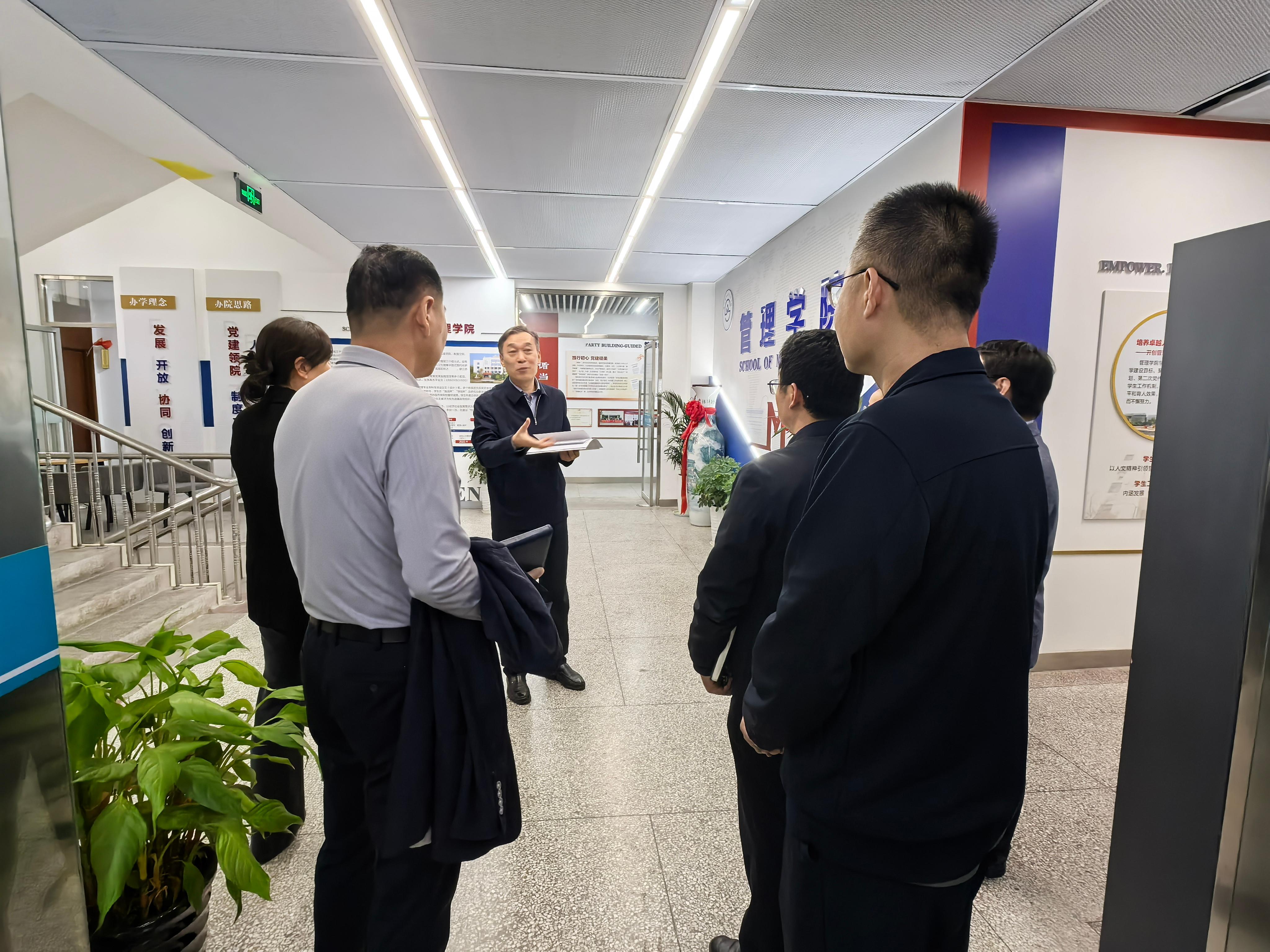 10月16日,校党委书记祝木伟、教务处副处长赵子明一行到管理学院开展审核评估线下考察模拟演练专项检查,学院全体教职工参加。