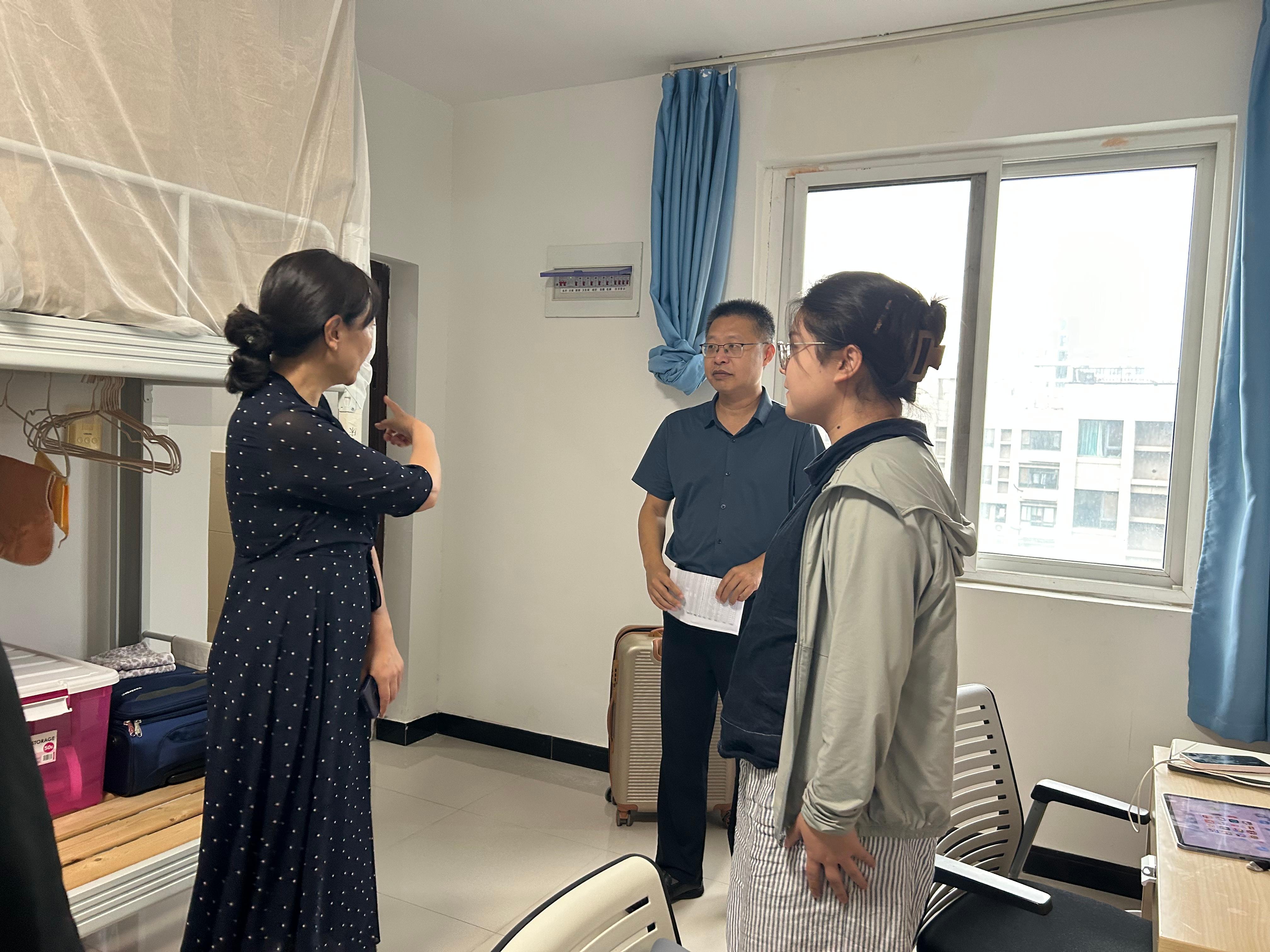 为进一步加强学生宿舍安全管理,排查安全隐患,营造一个安全、整洁、文明、和谐的学习生活环境,9月4日,我院党总支书记方锦花、党总支副书记颜亮、副院长温宗良、研究生辅导员王峰,深入学生宿舍,开展了全面细致的安全卫生专项检查工作。